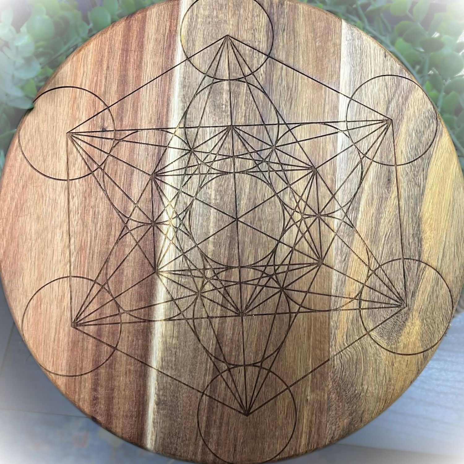 Local Artisan - Handcrafted wooden crystal grid board 11.5" - Metatron's Cube