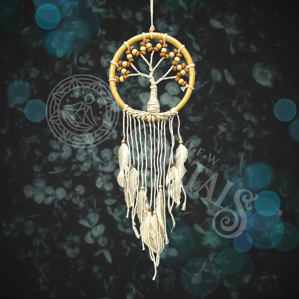 It is said that both good dreams and bad dreams circulate in the night air. Dream catchers are woven to allow the good dreams to pass through and the bad dreams to become entangled in the web where they perish at the first light of dawn.