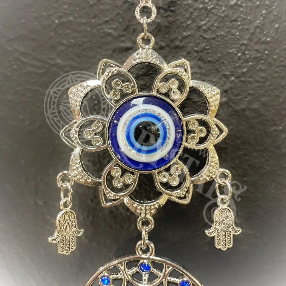 Evil eye is a belief that someone can cause you harm with a look, and wearing an evil eye talisman is a popular way to protect yourself. Evil eye talismans are most often blue and in the shape of a circular eye. By wearing or displaying the evil eye, you seek spiritual and psychological protection. When the talisman falls off or is broken, it has served its purpose.Â