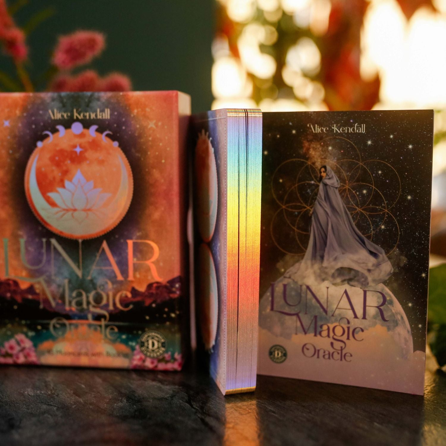 Since ancient times, the moon has been a symbol of intuition, femininity, and spirituality. With these beautiful cards by Alice Kendall, immerse yourself deeply in the fascinating magic of the moon: Discover the moon phases, lunar goddesses, and animals of the moon that accompany you on your journey to your inner truth. Draw a card for daily inspiration, to answer life questions, or for special lunar events. Includes 40 cards with iridescent edges and 144-page full-color illustrated guidebook with sensitive interpretations, detailed background information, and creative spreads.