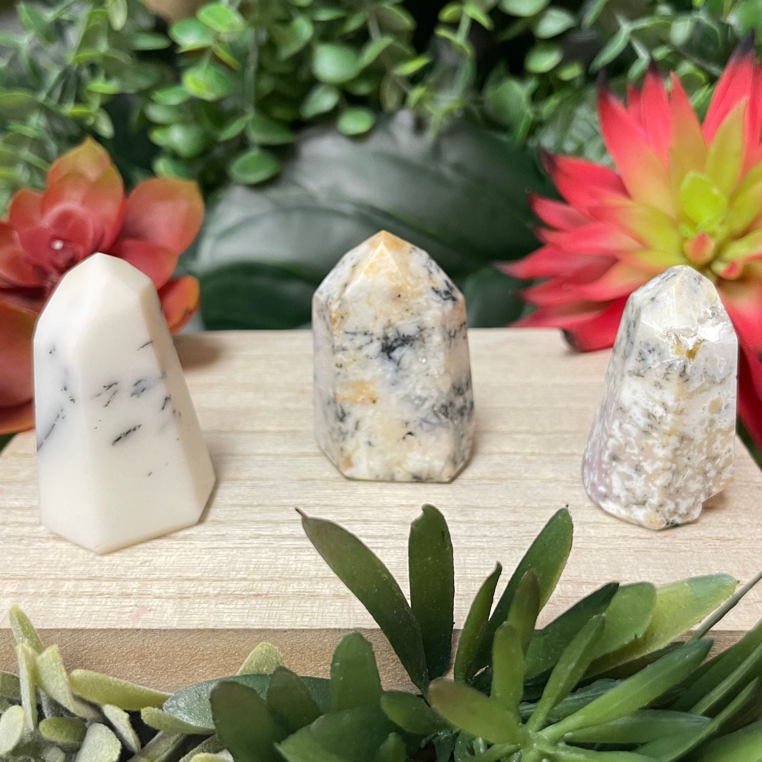 Welcome to the calming and tranquil energy of Blue Dendritic Opal. Promoting balance in all areas of life, Blue Dendritic Opal assists with clear and effective communication.Â