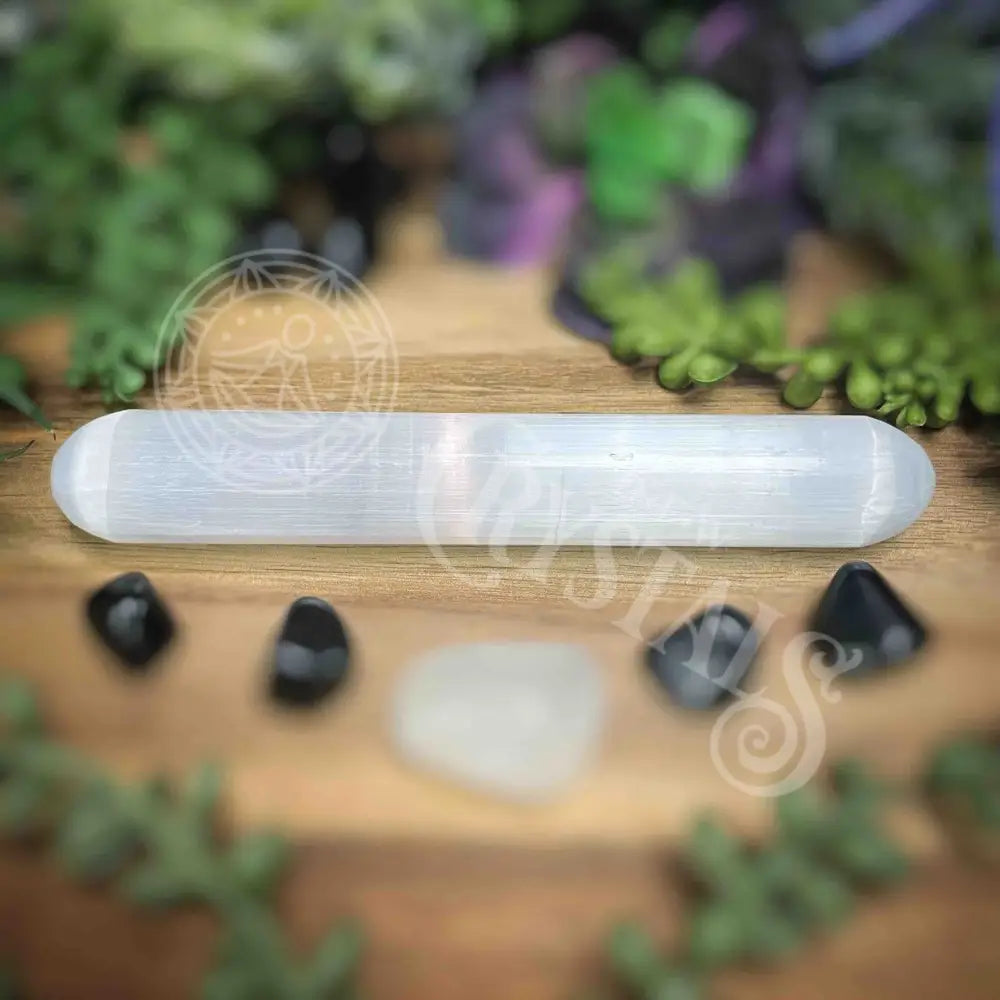 Selenite is believed to open the Crown and Higher Crown Chakras to access angelic consciousness and higher guidance. It aids in forming a protective grid around a home, sacred space, or workplace to ensure a harmonious, calm, and peaceful atmosphere. Selenite is also a powerful tool for spiritual cleansing, and is often used to cleanse other crystals and ones own aura. Selenite can promote mental clarity and well-being, helping one be honest with themselves