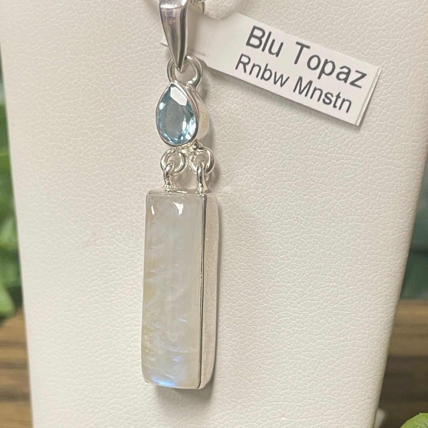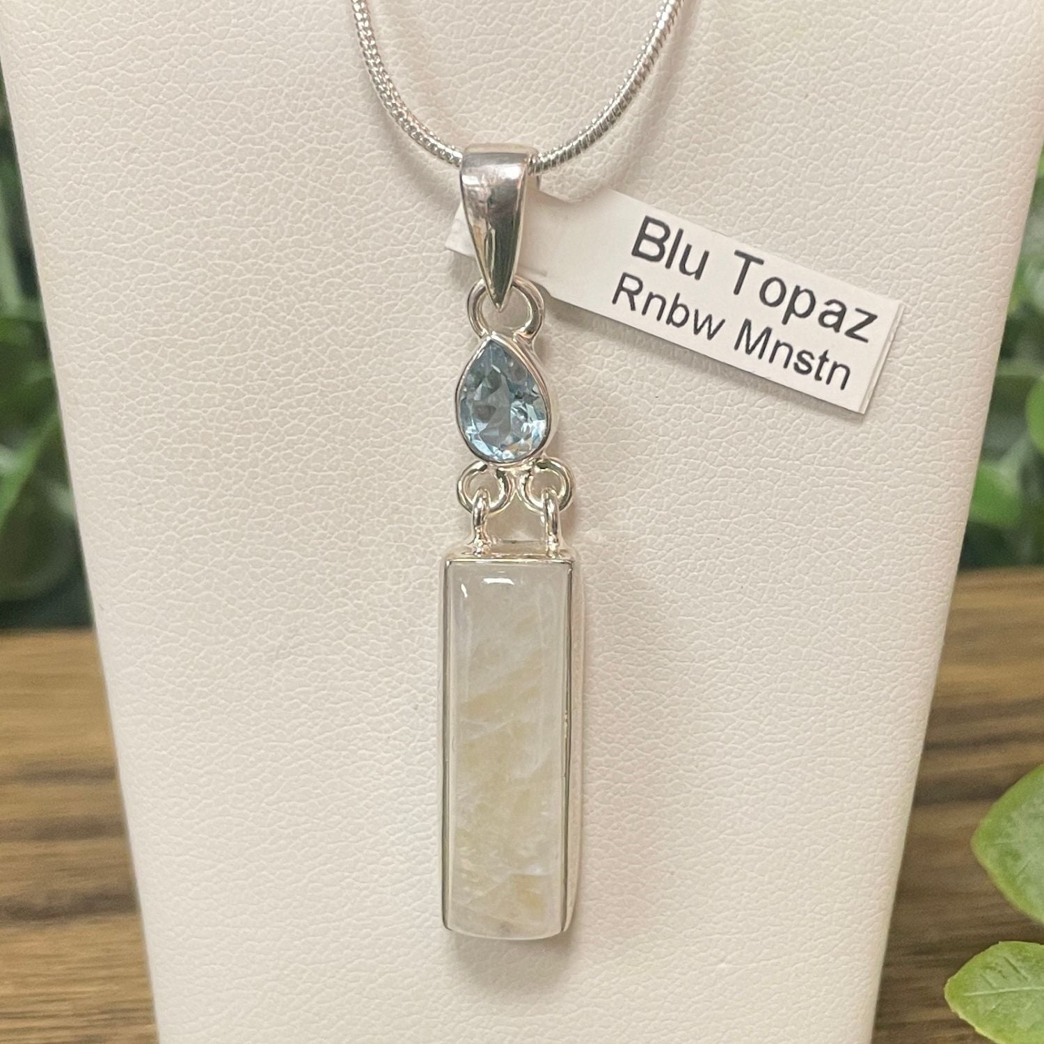 Blue Topaz and Rainbow Moonstone - Sterling Silver - Pendant