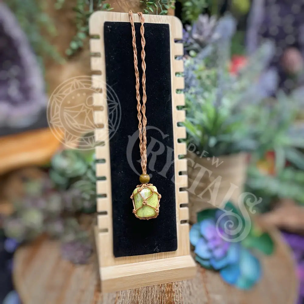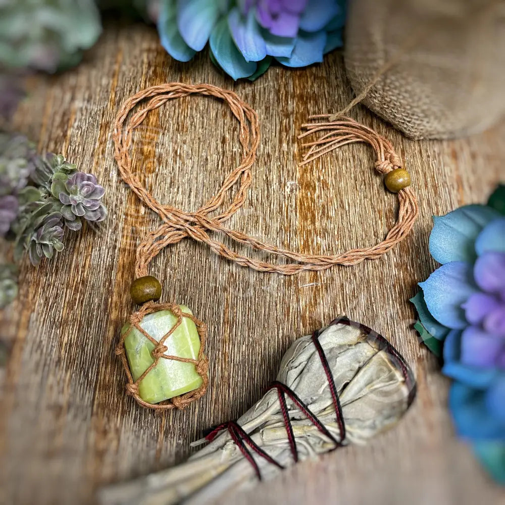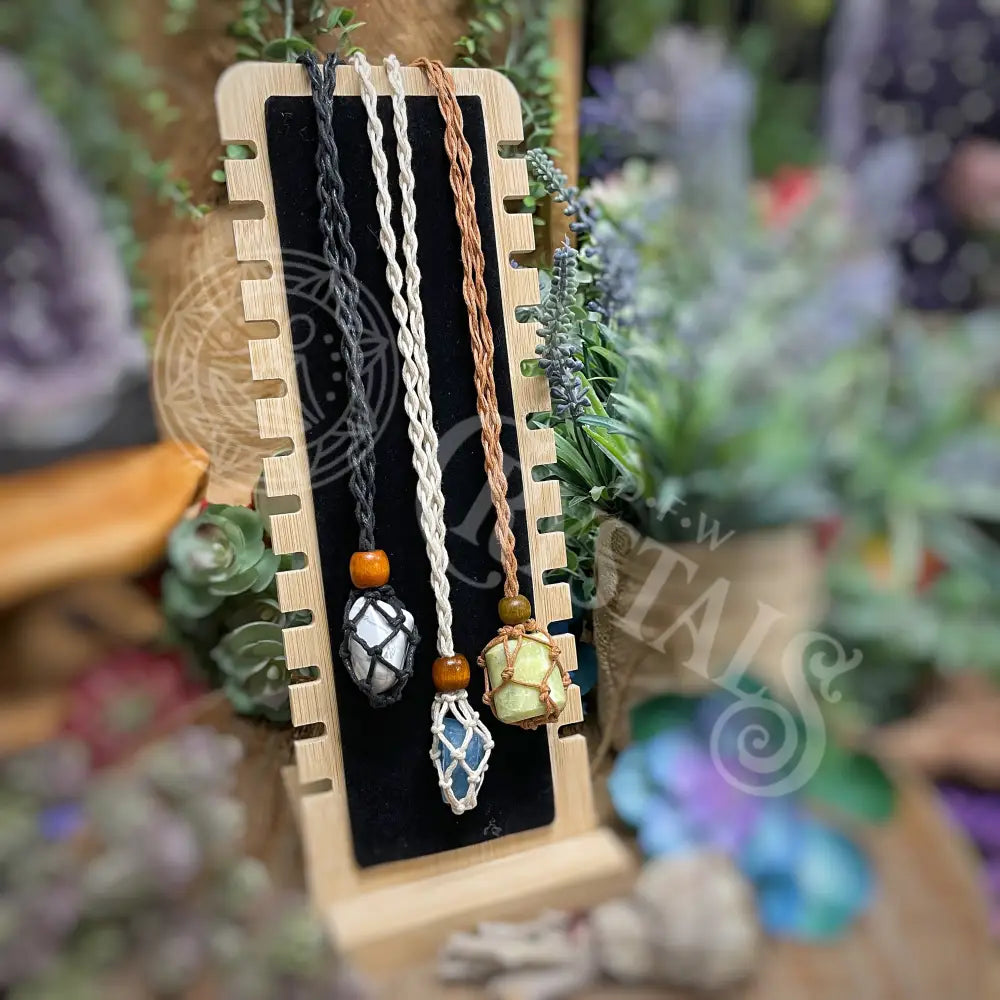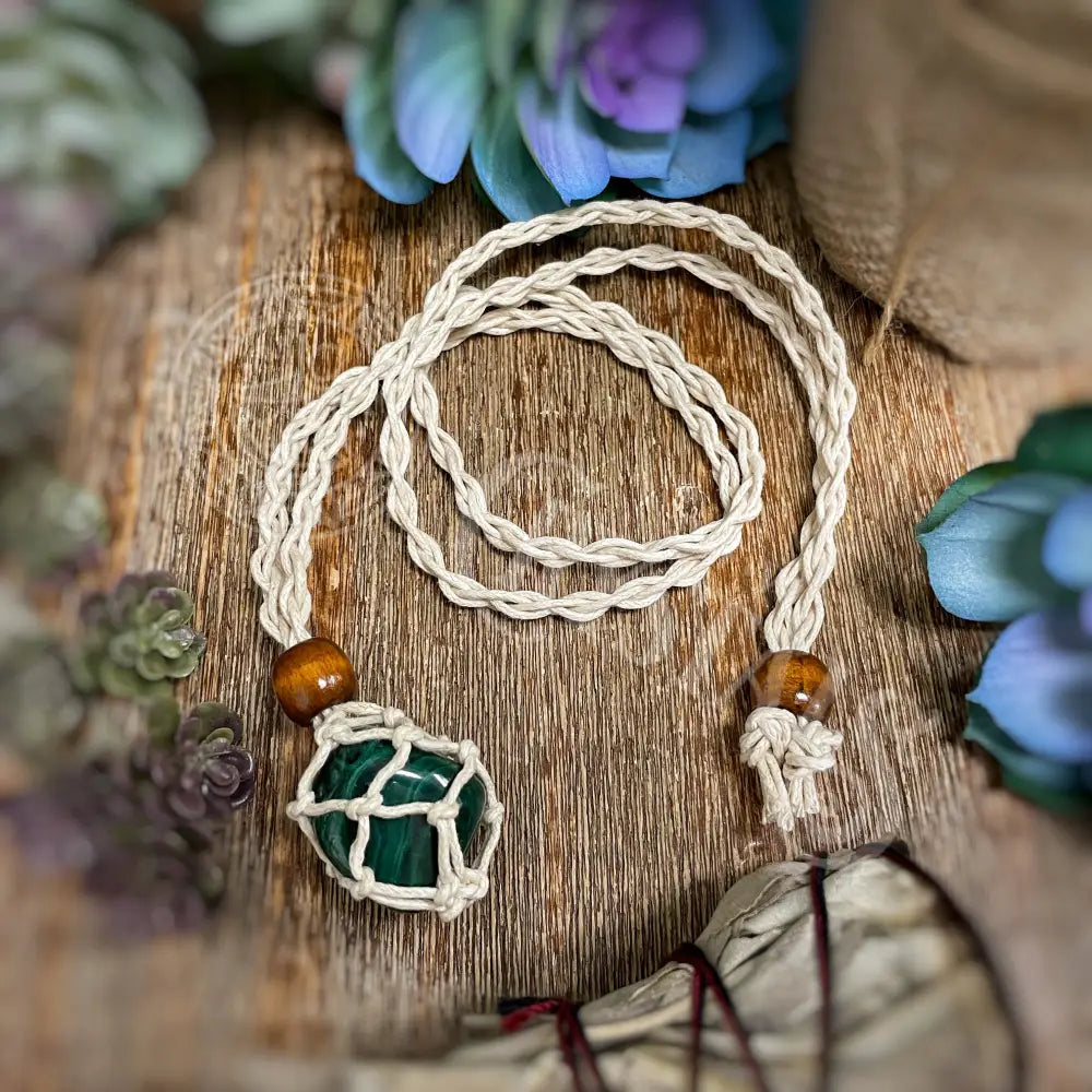 Personalize your day by wearing a coordinating crystal in this net style crystal holding necklace. Feeling like you need some protection - wear Black Obsidian. Wear Malachite if you are going through a transformational time in your life. Wear Clear Quartz for any needed support.