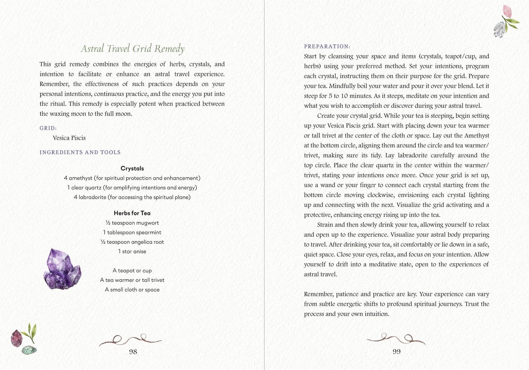 Dive into the world of crystals and unlock their hidden powers as you discover the intricate interplay between crystals and tea magick. Through this book, you’ll unravel the secrets of combining these two ancient practices, creating a synergy that enhances your spiritual journey. Explore the symbiotic relationship between specific teas and corresponding crystals, as well as the profound impact they can have on your energetic field. Gain insight into the sacred geometry behind crystal grids and learn how to design your own layouts that align with your intentions. A Tea Witch’s Crystal Brews is your comprehensive guide, offering step-by-step instructions, enchanting rituals, and practical tips that allow you to infuse your daily life with the transformative energies of tea magick and crystal grids. Whether you’re a seasoned practitioner or new to the world of metaphysical arts, this book will empower you to cultivate balance, mindfulness, and manifestation in your spiritual practice.