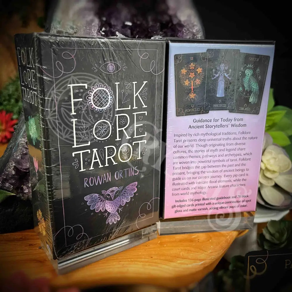Folklore Tarot bridges the gap between the past and the present, bringing the wisdom of ancient beings to guide us on our current journey. Every pip card is illustrated with intricate floral elements, while the court cards and Major Arcana feature characters from world mythology.