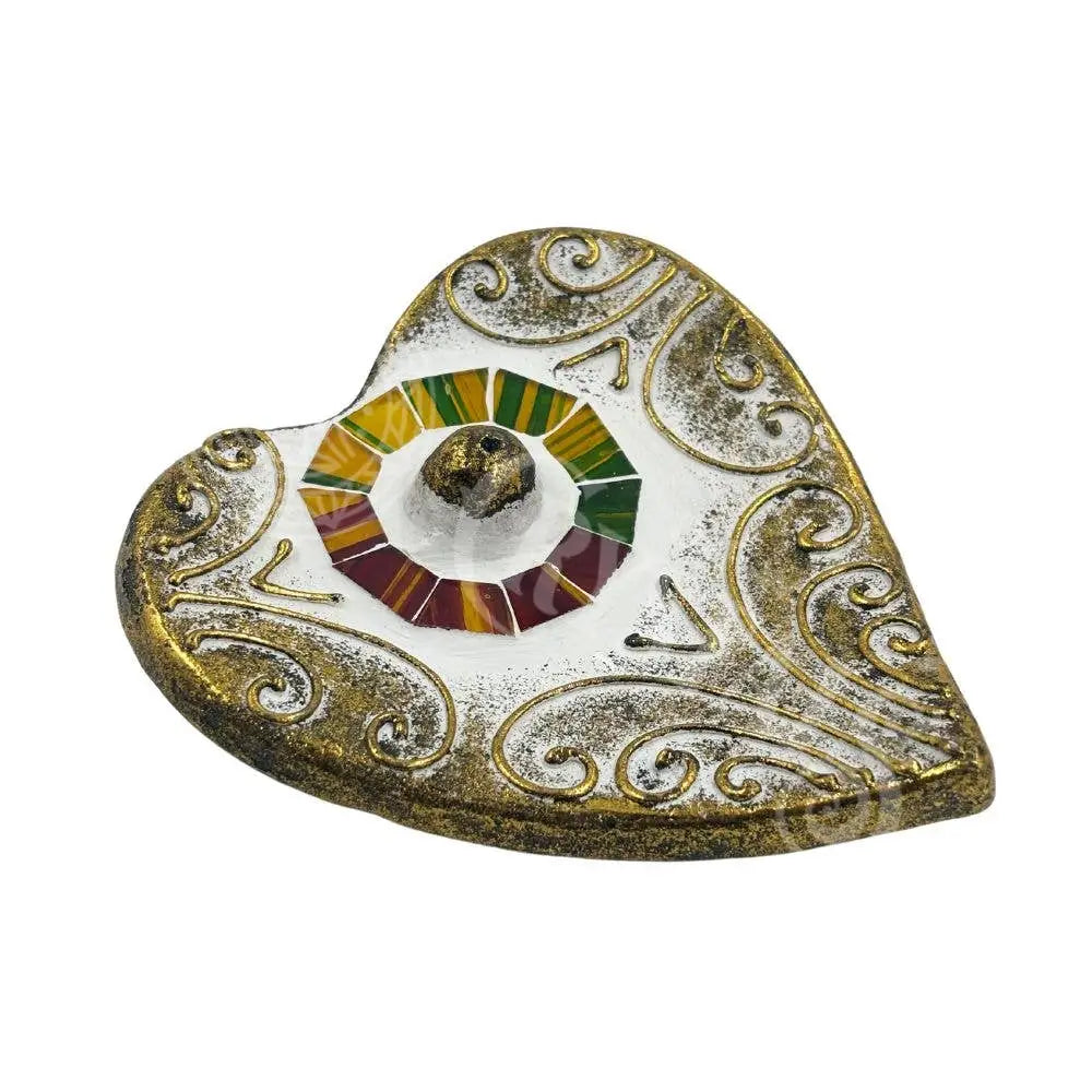 Mosaic Heart Incense Holder 4.5"L x 4.2"W .