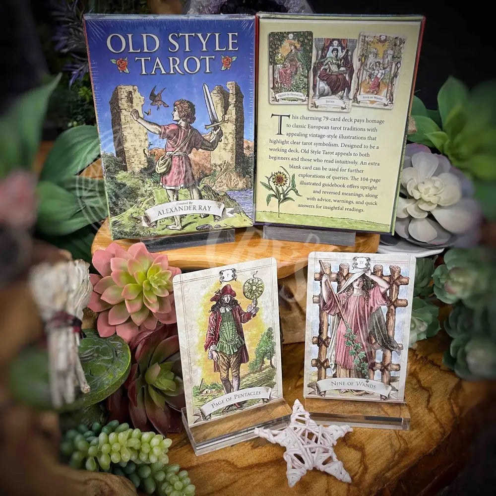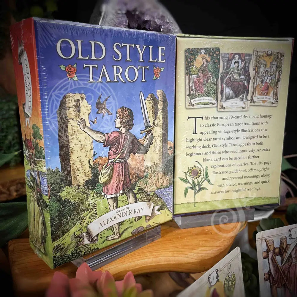 This charming 79-card deck pays homage to classic European tarot traditions with appealing vintage-style illustrations that highlight clear tarot symbolism. Designed to be a working deck, Old Style Tarot appeals to both beginners and those who read intuitively. An extra blank card can be used for further explorations of queries. The 104-page illustrated booklet offers upright and reversed meanings, along with advice, warnings, and quick answers for insightful readings.