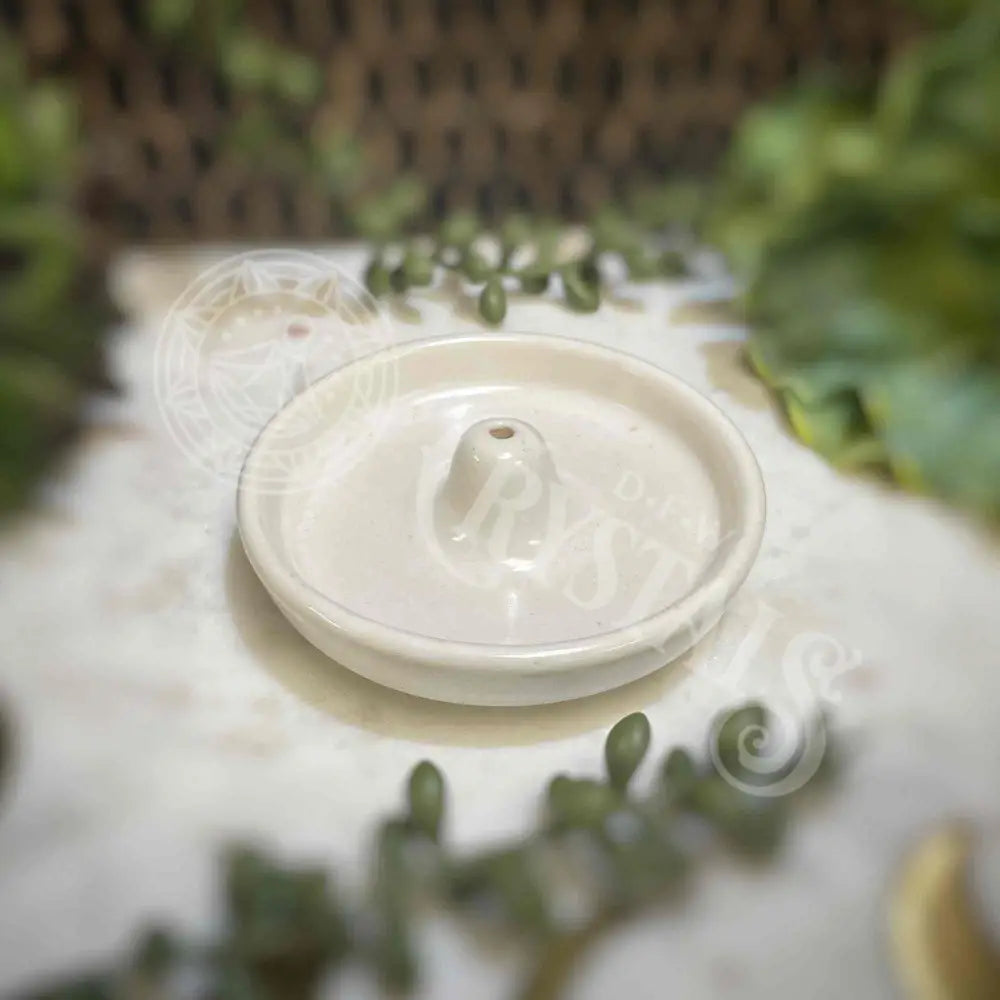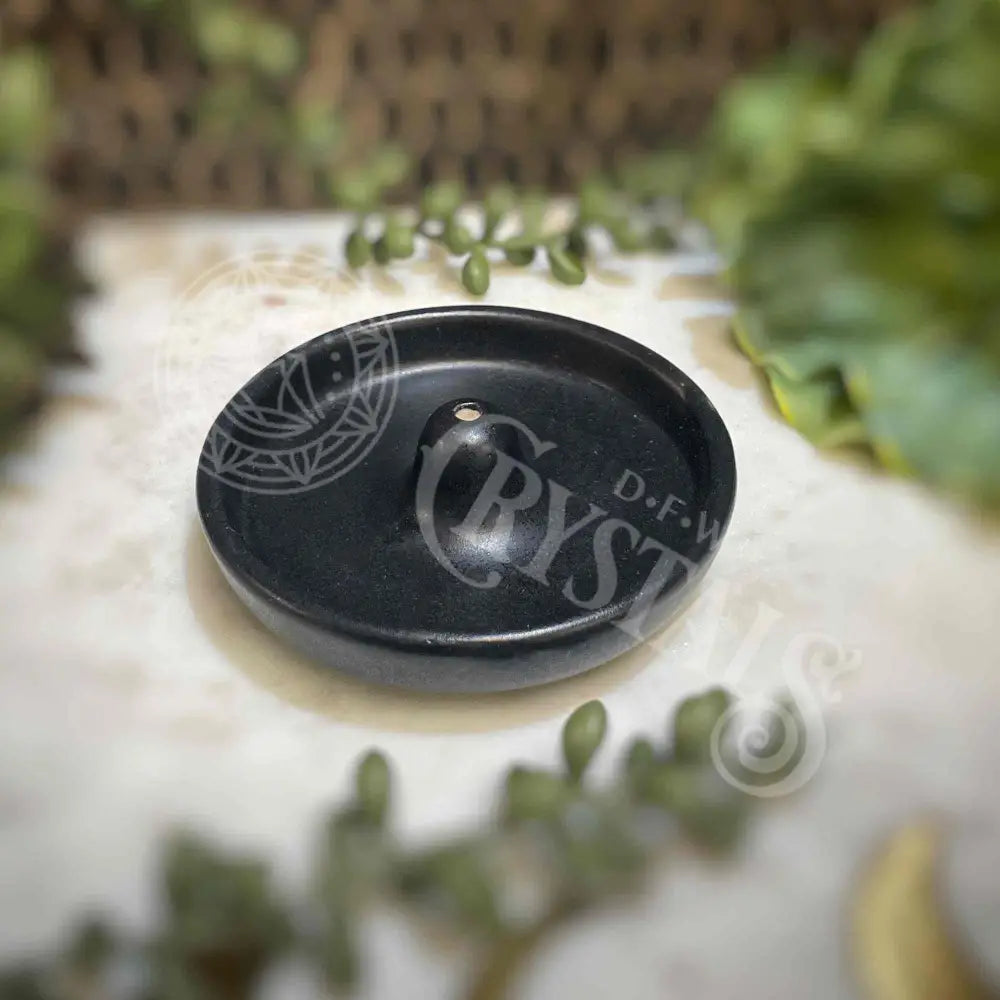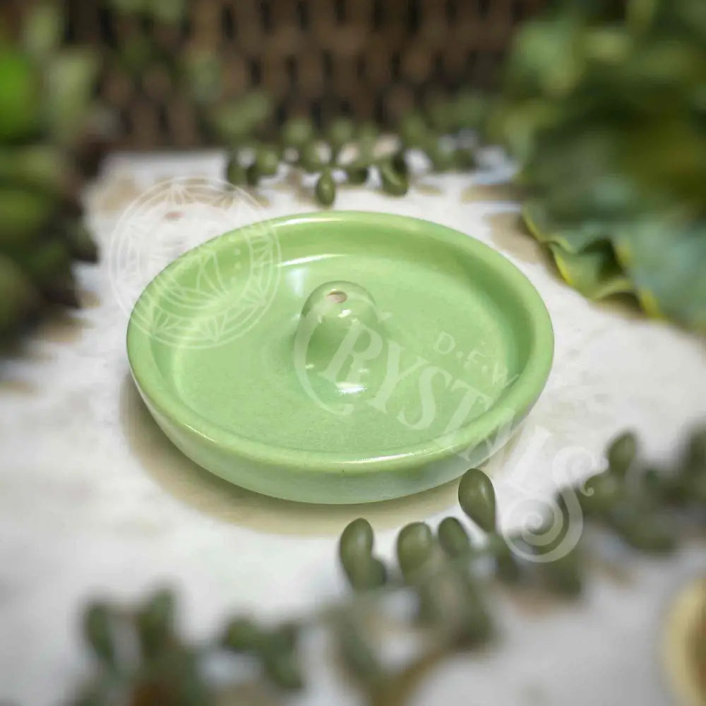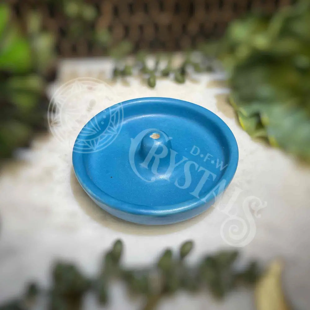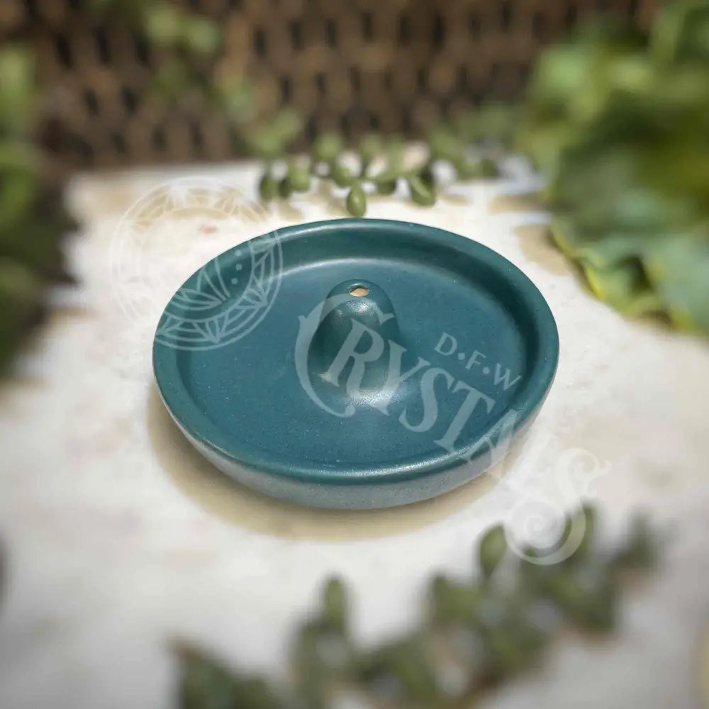 Incense Stick Burner: Choose from: White, Turquoise, Green, Cobalt, and Black. One incense stick hole. 3" diameter, painted ceramic.