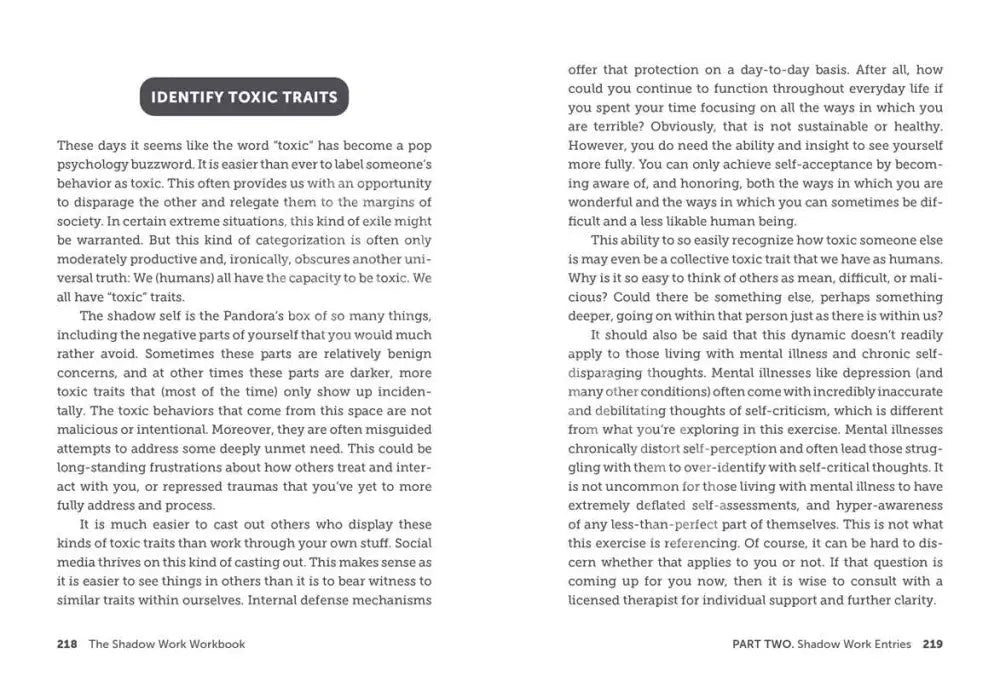 [Adams Media] Explore and embrace all parts of yourself with the help of the mental health self-care practice of shadow work so you can dig deeper into discovering who you are and pursue a happier, more fulfilled life. Shadow work—the process of exploring your pain, trauma, and imperfections—is a powerful tool to help you embrace and accept yourself, even the parts that are difficult. The Shadow Work Workbook gives you everything you need to get started with a clear explanation of what shadow work is, how it works, and how it helps you, as well as guided meditations and accompanying journal prompts and affirmations to walk you through your own shadow work. Written by licensed therapist Jor-El Caraballo, this book is the perfect companion for your self-exploration journey.