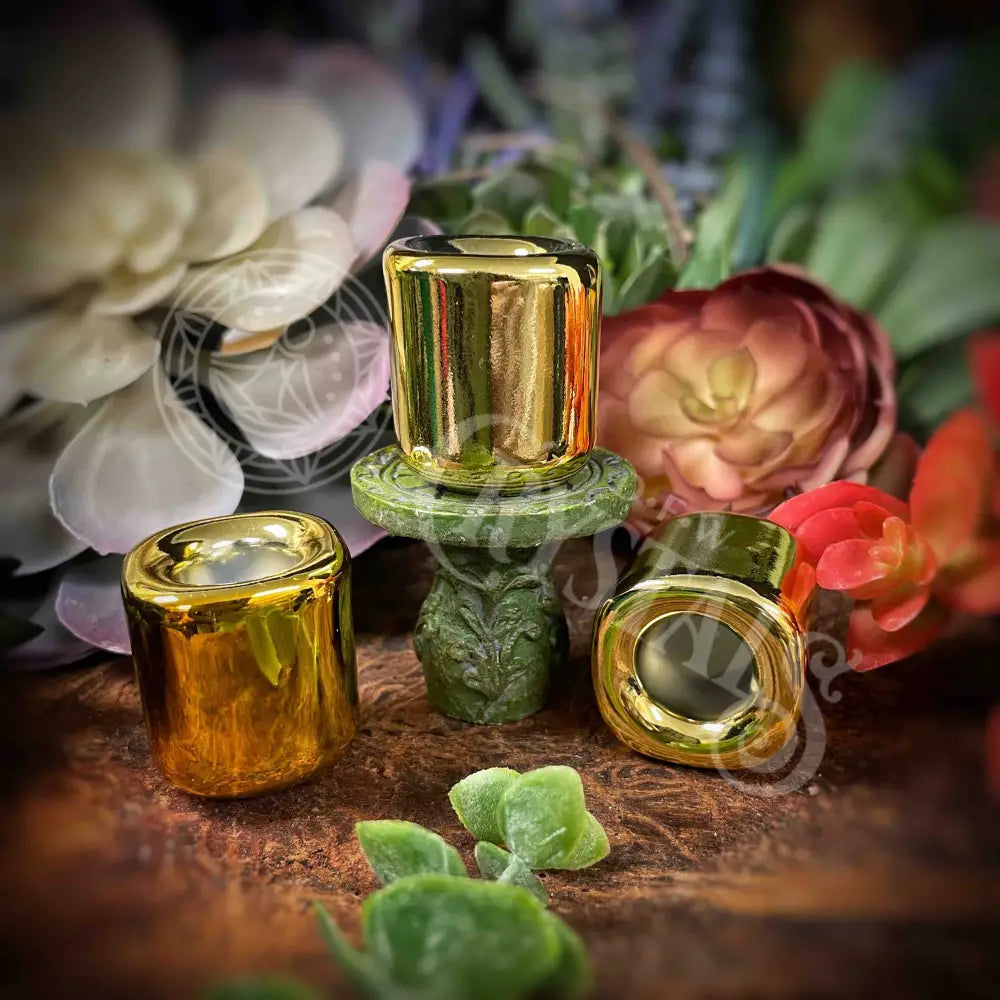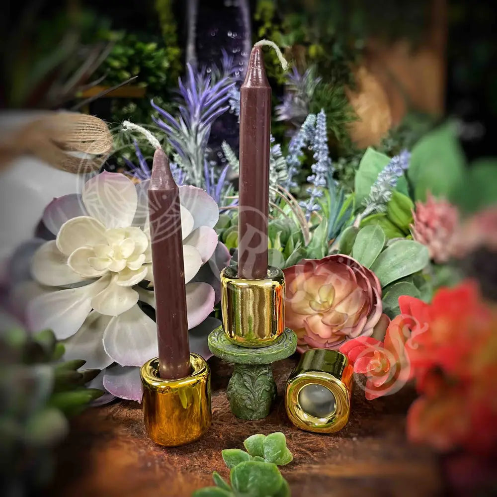 Get your ambiance on point with this unique charm candle holder in gold. Perfect for adding a touch of magic to any room. (Candles not included)