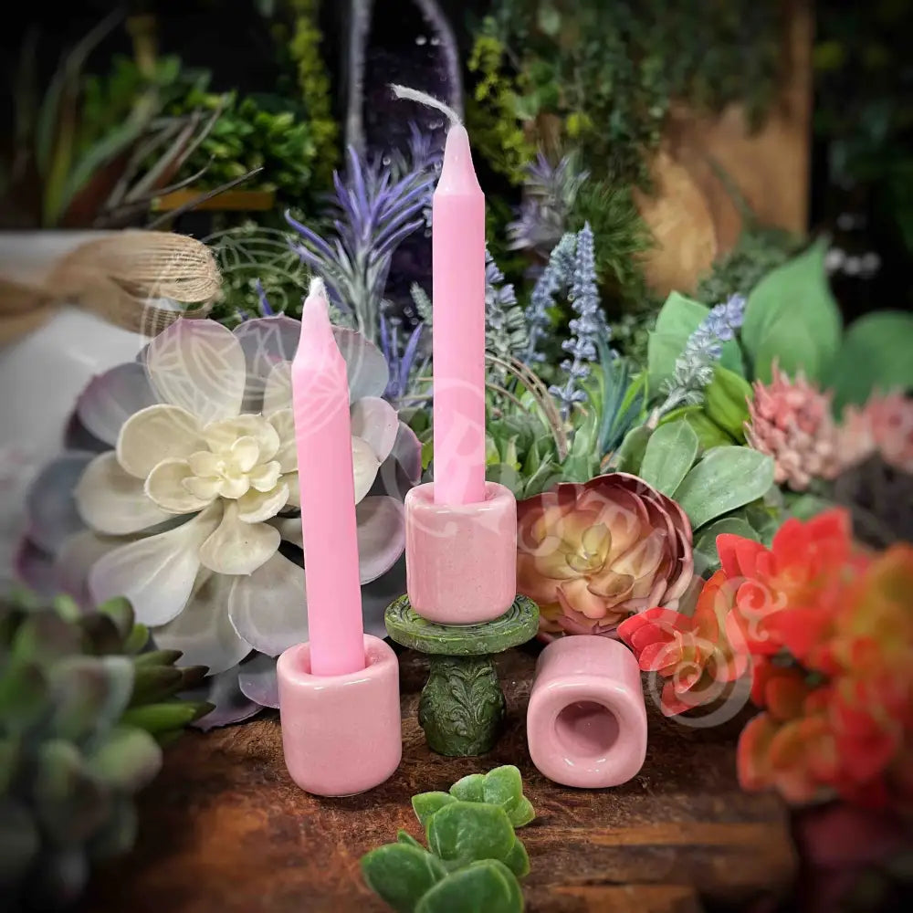 Get your ambiance on point with this unique charm candle holder in pink. Perfect for adding a touch of magic to any room. (Candles not included)